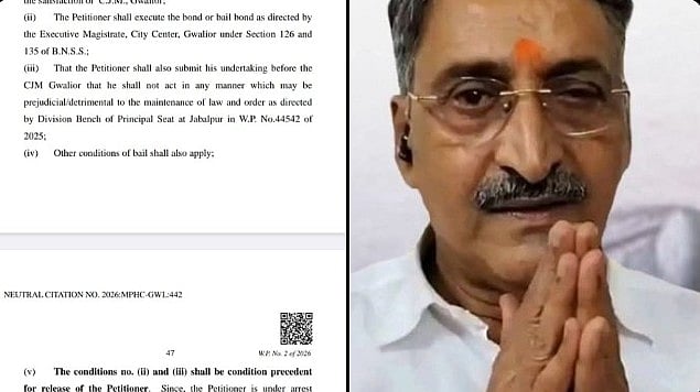 Mishra, currently under arrest, will be released upon furnishing a personal bond of ₹1,00,000 with one surety of the same amount, to the satisfaction of the Chief Judicial Magistrate (CJM), Gwalior. He must also execute a bail bond as directed by the Executive Magistrate, City Center, Gwalior, under Sections 126 and 135 of the Bharatiya Nagarik Suraksha Sanhita (BNSS). Critically, Mishra is required to submit an undertaking before the CJM affirming he will not engage in any actions prejudicial to law and order, echoing directives from a Division Bench at the Principal Seat in Jabalpur (WP No. 44542/2025). Standard bail conditions apply, with execution of the bond and undertaking as prerequisites for release. The Senior Superintendent of Police, Gwalior, has been ordered to expedite arrangements for compliance.