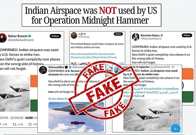 New Delhi- The government on Sunday dismissed claims making rounds on social media that Indian airspace was used by the US to launch aircraft against Iran during Operation Midnight Hammer. US Defence Secretary Pete Hegseth earlier said that American military strikes at three Iranian facilities have devastated the Gulf nation's nuclear programme even as Vice President J.D. Vance hinted that the US still wants to pursue diplomatic process with Tehran.