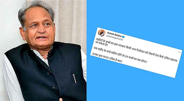 "How can it be justified to curb the rights of the children of the martyrs and give the job to another relative ? What will happen to the children when they become adults? Is it right to kill their rights? " Gehlot asked in the tweet. The CM also alleged that some of the BJP leaders are using the martyrs widows for their own political benefits and disrespecting the. He also wrote "this has never been Rajasthan's tradition and I condemn it". It is told that two memorials have already been erected as homage to Martyr Hemraj Meena, however hia wife is demanding for a third statue which the government feels is unjustifiable considering other martyrs' families.
