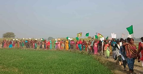 Azamgarh— On Friday, a demonstration was organized to commemorate the 100th day of the movement opposing the acquisition of land for the proposed International Airport in Khiriya Bagh, located in the Azamgarh district. A large number of farmers and laborers participated in the procession, which began at Khiria Bagh and passed through the towns of Hasanpur, Lakshehra, Shrikantpur, Garhhan, and Jigina Karmanpur. The participants raised slogans such as "the land will not be ceded," "Who makes India? Peasants and farmers," "Cancel the master plan for airport expansion," "We fought against colonialism and now we will fight against theft," and "The airport is just an excuse, the true intention is to seize our land".